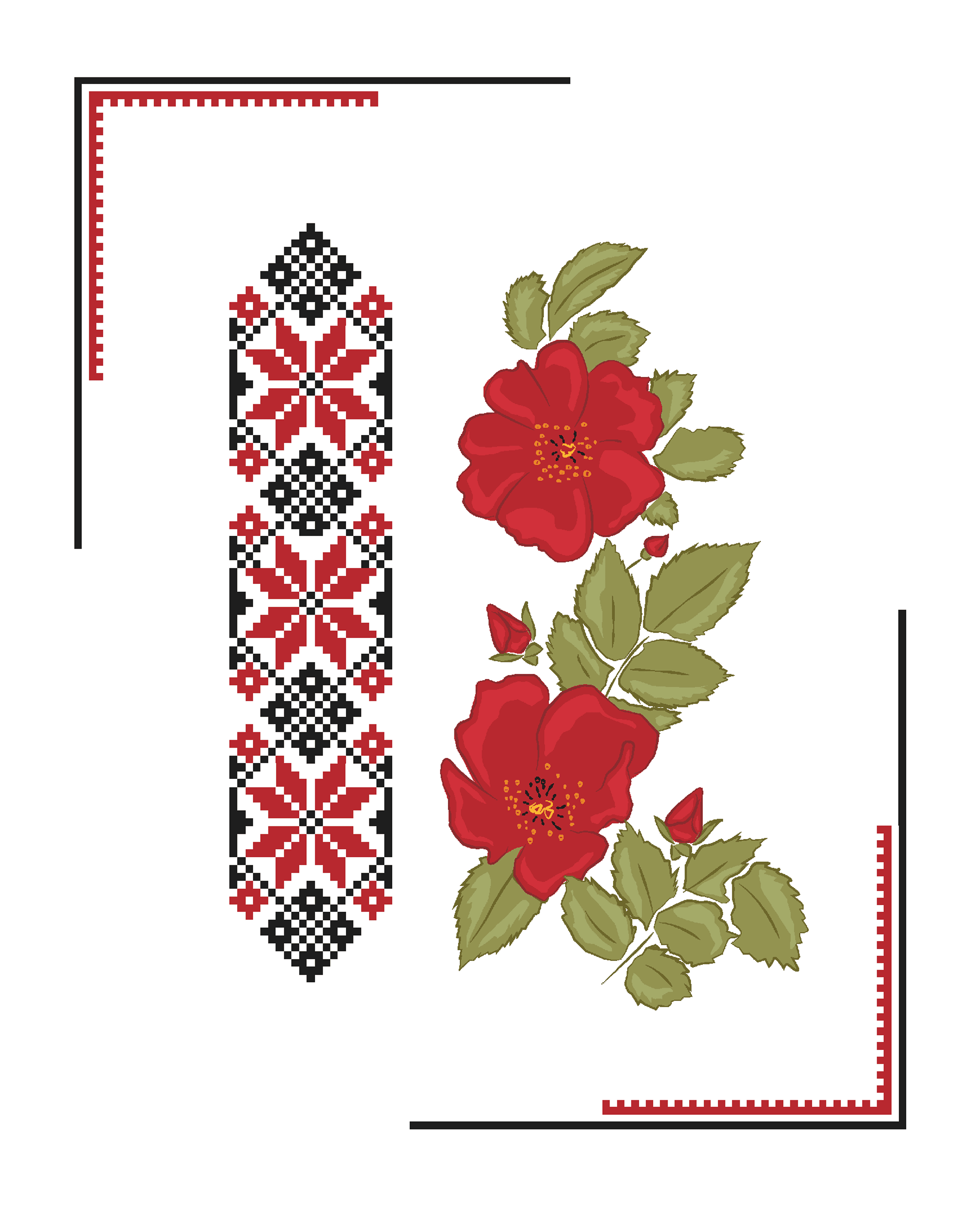 Дуже дякую за таку чудову можливість намалювати частинку візерунку нашої Української вишивки. Взяла візерунок червоний на чорному, це прекрасне поєднання і гарний вид в інтер'єрі.